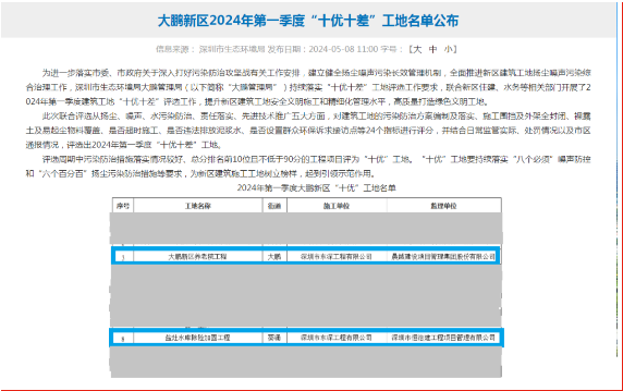 東深工程大鵬新區(qū)養(yǎng)老院項目再次斬獲2024年一季度質量安全綜合評估第一名